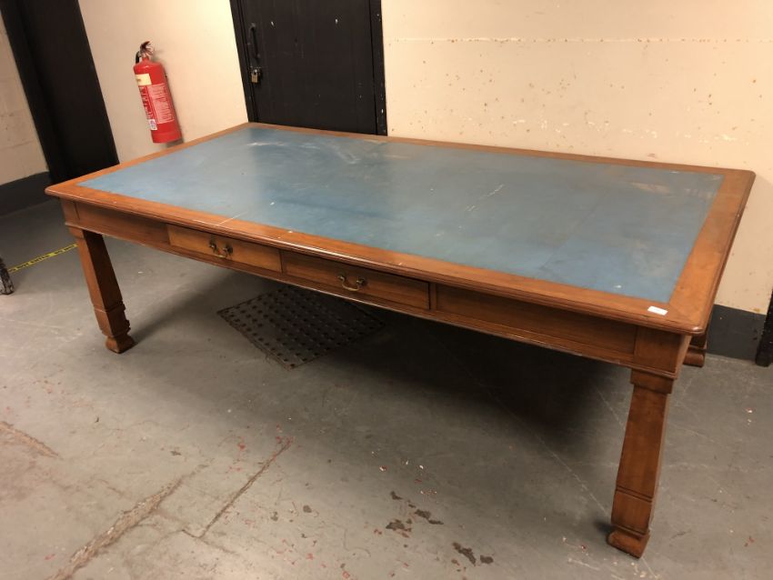 An early 20th century mahogany library table fitted with drawers. 246 cm x 122 cm