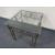 A contemporary wrought metal and glass lamp table, a coffee table and a black framed mirror