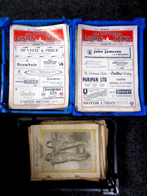 Three crates containing mid 20th century magazines : The War Illustrated and the Illustrated London News