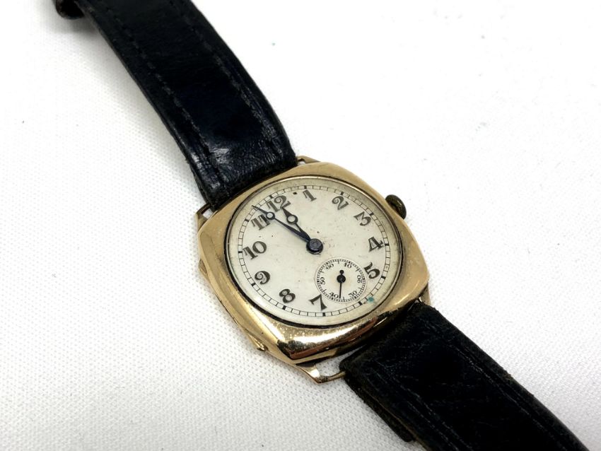 A gent's vintage 9ct gold cushion shaped wristwatch