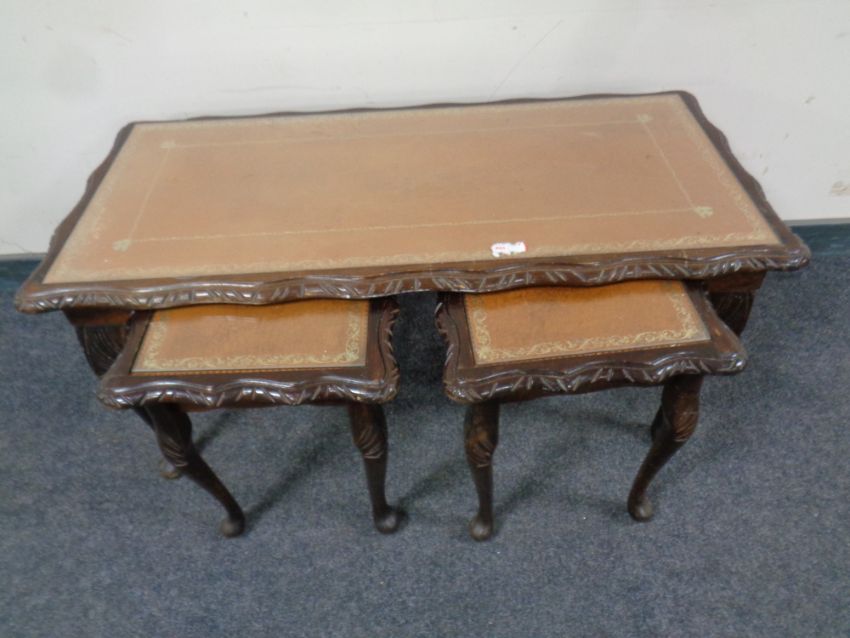 A nest of three 20th century teak G Plan tables together with a further nest of three leather topped tables