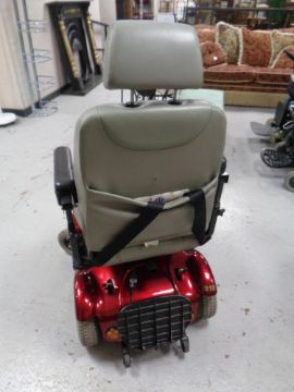 A Rio Rascal power assisted wheelchair with charger and seat restraint