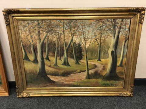 Continental school, oil on canvas depicting woodland, 95 cm x 65 cm.