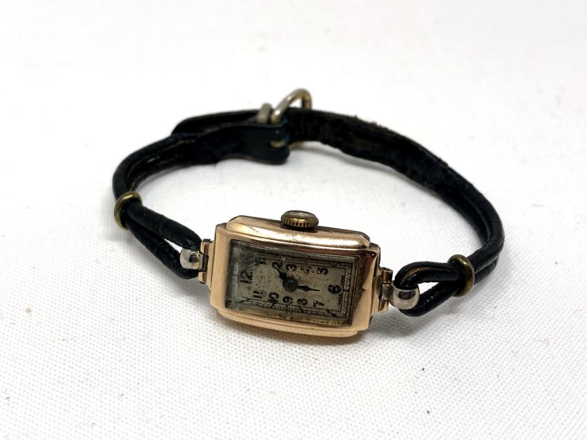 A lady's vintage 9ct gold rectangular curved wristwatch
