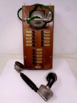 An early 20th century wall mounted telephone with switch box