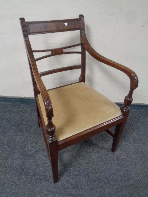 A reproduction mahogany carver chair with dralon seat