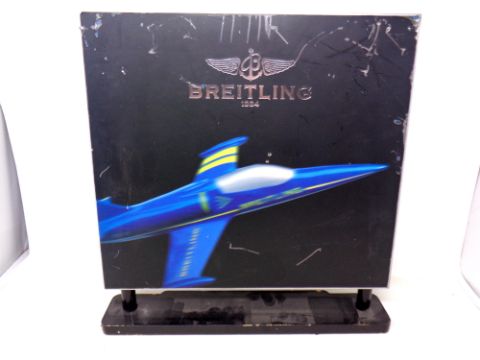 A Breitling twin sided shop advertising stand, one side with relief fighter jets. Height 39.5 cm x 38.5 cm