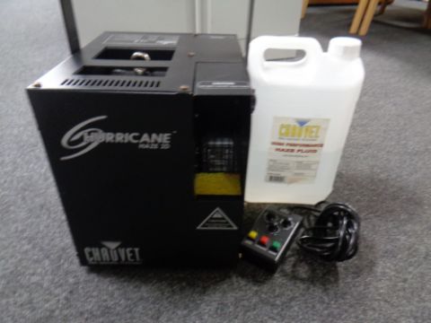 A Chauvet Hurricane Haze 2D with remote, manual lead and fluid