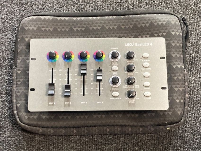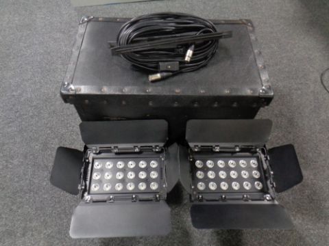 A pair of LEDJ Q colour projection lights with case, manuals, leads and controller. ** fully working and guaranteed by the vendor **