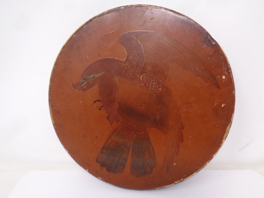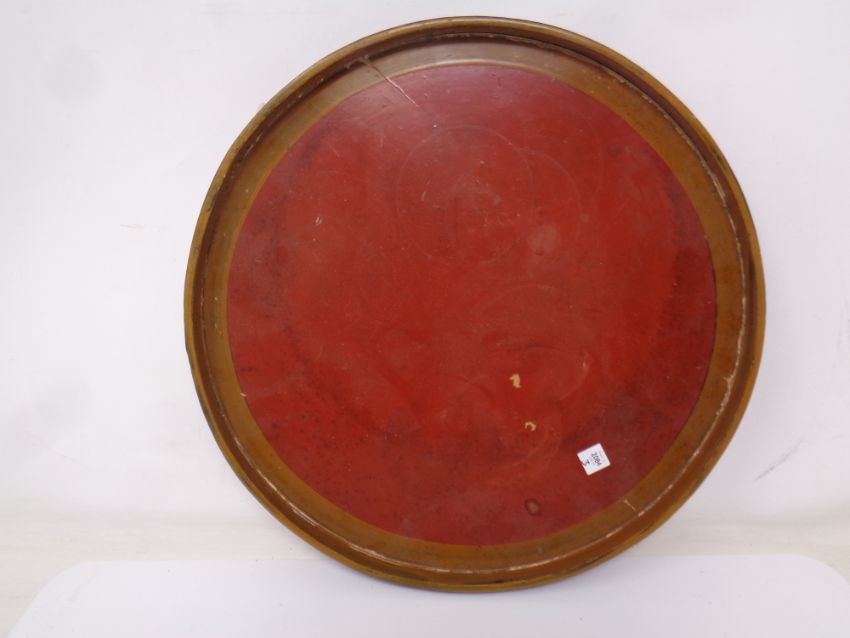 A circular Japanese lacquered tray, diameter 26.5 cm