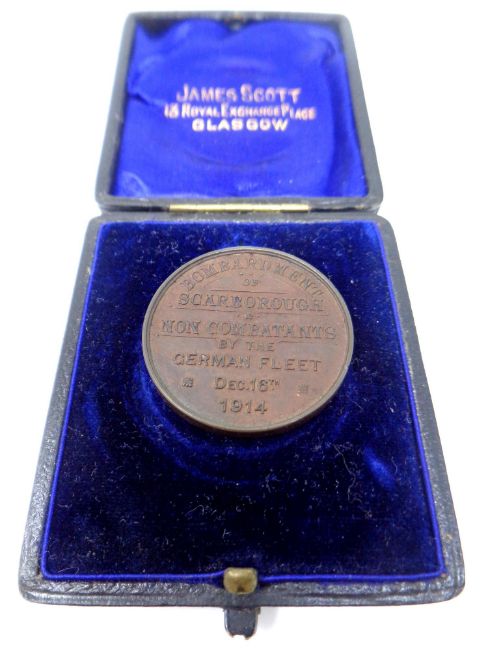 A 1914 WWI medal : The bombardment of Scarborough, none combatants by the German fleet, December 16th 1914, in original box.