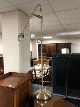 An adjustable standard reading lamp, in antique brass effect finish.