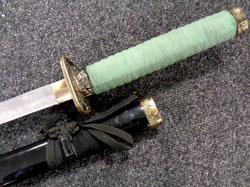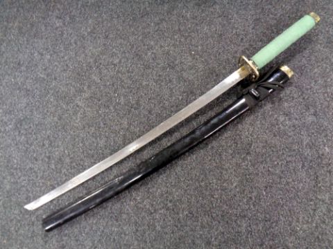 A reproduction Japanese katana in lacquered scabbard