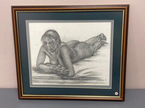 David Belilios : Nude, pencil sketch, signed, 34 cm x 28 cm.