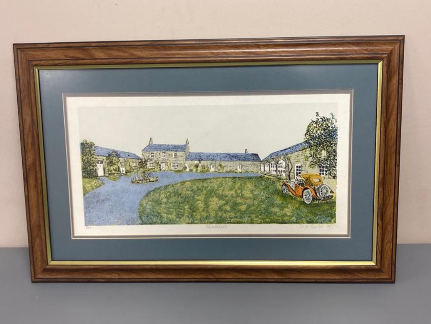David Belilios : Shield Hall, screen print, 3/20, 44 cm x 21 cm, signed.