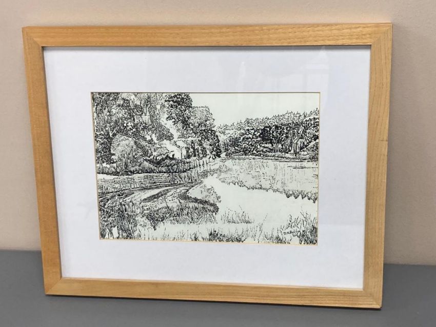 David Belilios : Marshland, mono print, signed, 27 cm x 19 cm.