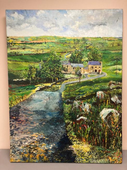 David Belilios : Sundays in farmland, oil on canvas, signed, 122 cm x 91 cm.