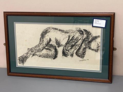 David Belilios : Reclining nude 3, charcoal, signed, 50 cm x 26 cm.