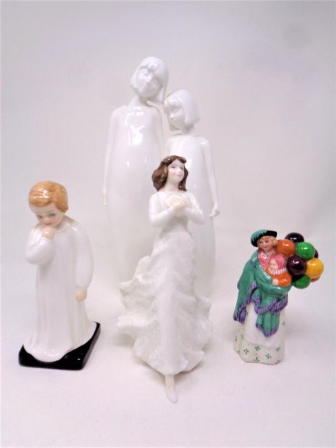 A Royal Doulton Images figure entitled Sisters together with three further Royal Doulton figures comprising of Forget Me Not, Darling and The Balloon Seller (miniature)