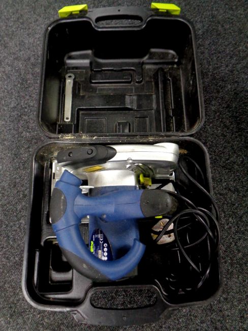 A Challenge Xtreme hand saw in case together with a further box containing shower head, trolley wheels etc