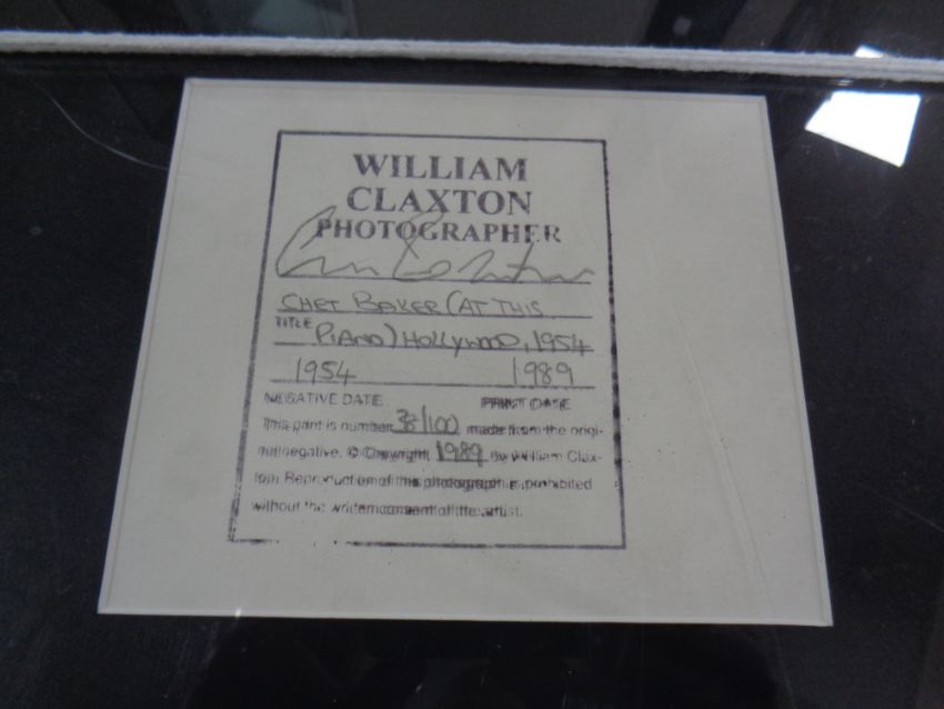 Photographer: William Claxton - Chet Baker at the piano, Hollywood 1954 photograph. Copyright stamped, titled, dated 1989. Signed by photographer. Print 38/100. Image: 11.5X11.5 inches.