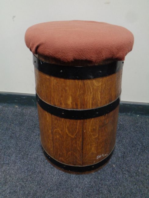 A coopered oak barrel stool