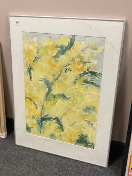 A continental watercolour depicting yellow flowers, 44 cm x 62 cm