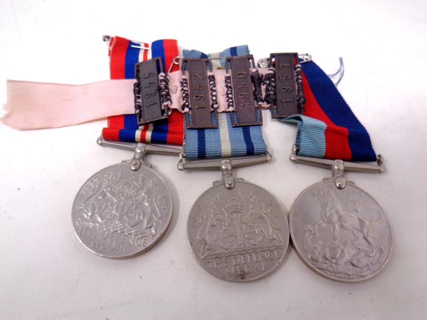 Two WWII Defence Medals (one with odd ribbon), a War Medal together with four further medals bars on ribbon 1950/52/55/57.