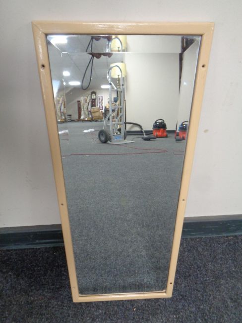 Three Clarice Cliff framed prints together with a bevelled mirror initialled 'BR'.