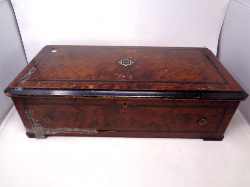 A 19th century walnut cylinder music box