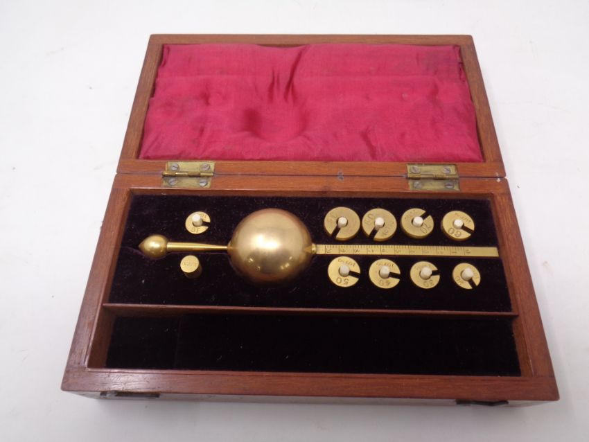 A Sike's hydrometer in a mahogany case