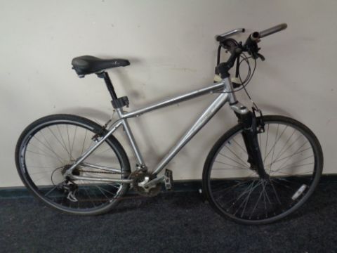 A Hybrid mountain bike with front suspension