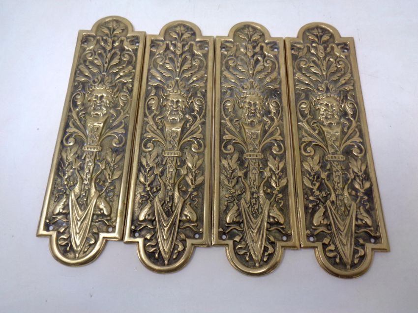Two sets of four cast brass door plates
