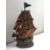 A copper and cast iron hearth companion set in the form of a galleon, complete with brush and tongs.