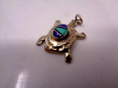 A white metal tortoise pendant