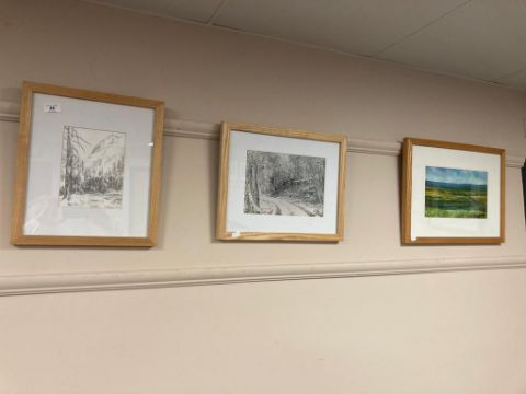 Three David Belilios pictures to include : oil painting of a landscape, signed pencil drawing etc