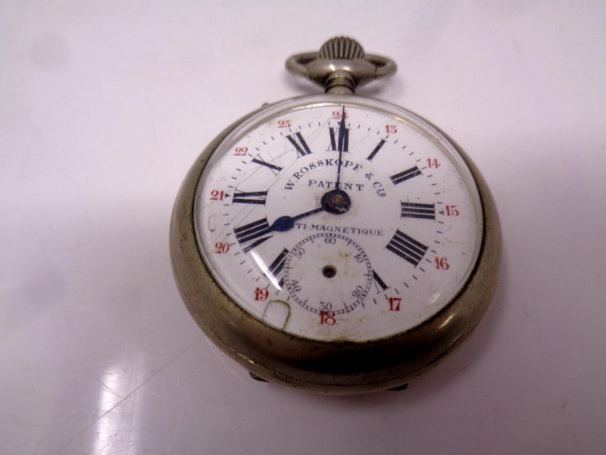 A W Rosskopf and Co Garanti anti-magnatique pocket watch with enameled dial.