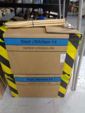 Two boxes of bamboo kitchen utensil sets