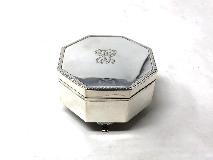 An octagonal silver trinket box, Birmingham marks, width 7.5cm.