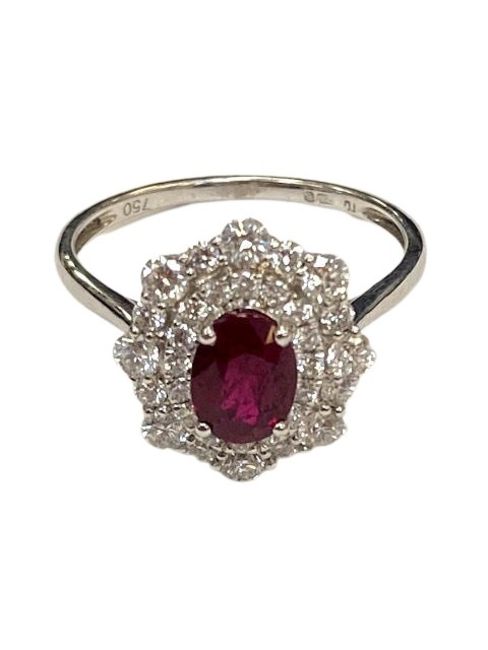 A ruby and diamond fancy cluster ring, approximately 0.81ct, ruby 1.03ct, size N/O.