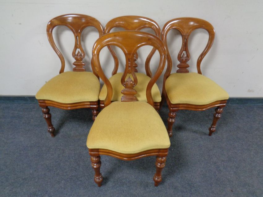 A mahogany extending oval dining table together with set of four stained pine dining chairs