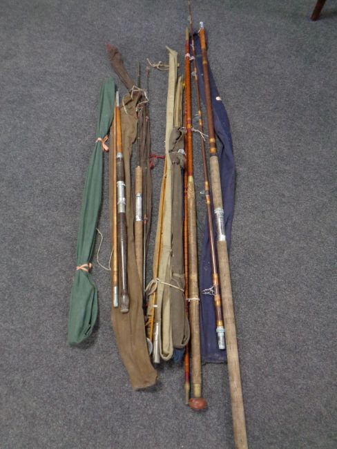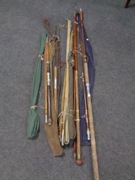 A bundle of early 20th century and later fishing rods