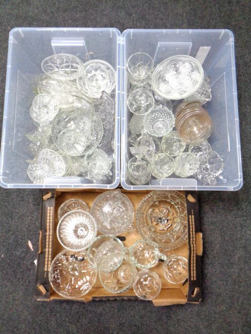 Three boxes of 20th century pressed glass