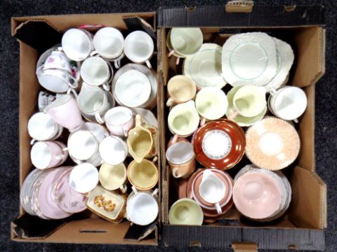 Two boxes of 20th century part tea sets, Royal Stafford, Old Foley etc