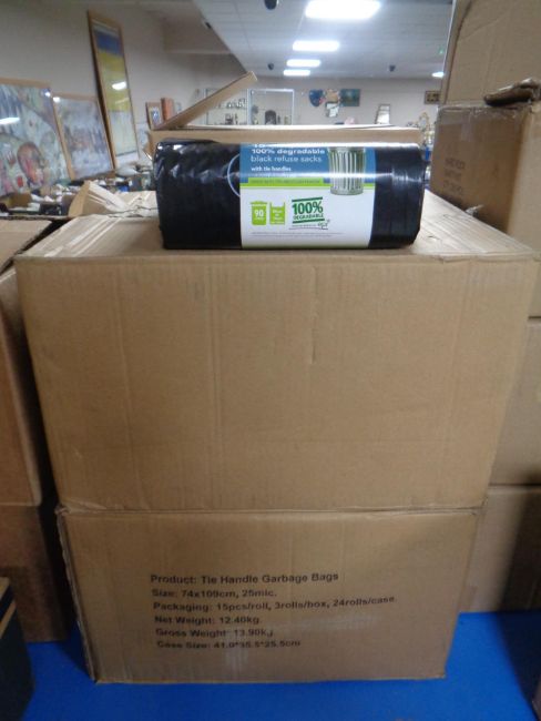 Two boxes of black refuse sacks