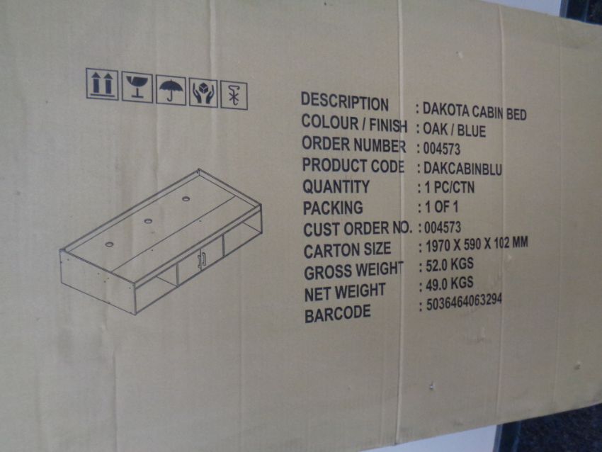 A Dakota cabin bed oak/blue, boxed, as found