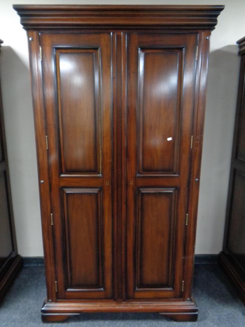 A contemporary mahogany effect two door wardrobe