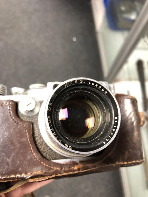 A Leica Ernst Leitz Wetzlar camera numbered 228,805, with Ross of London Xtralux F/2 lens number 199,108, in Cooke & Perkins rangefinder coupled mount, lacks UV filter. NB: Estimate increased to reflect the rarity of the Ross Xtralux lens. Only a handful of the F/2 lenses were ever produced. For a similar example, serial number 199,154, see Special Auction Services, Fine Photographica including The Mike Simkin Magic Lantern Collection, 7th July 2016, lot 681.