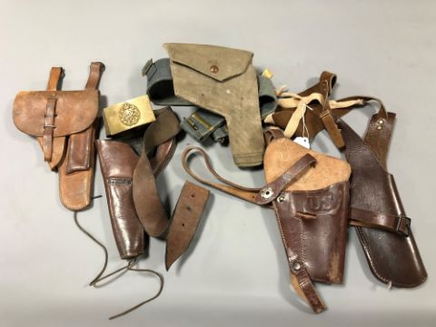 Five various Second World War and later leather and canvas holsters