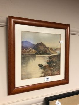 Twentieth century school : Castle by a loch, watercolour, indistinctly signed, 25 cm x 25 cm, framed.